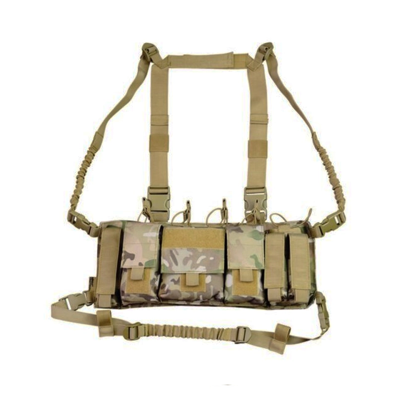 A nice light weight chest rig perfect for carrying equipment with multiple pouches for all your gear.